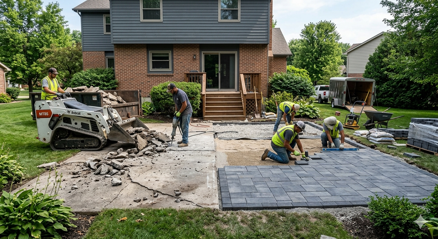 Absolutely. We handle demolition, haul-away, and full patio replacement.